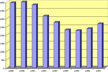 Central and local government expenditures are about equal. Combined they come to about 38% of GDP. Fiscal policy has been very disciplined since the 1998 debt crisis. The combined budget surpluses during 2002 were 2.3% of GDP and 1% during 2003. Analysts remain skeptical that high rates of economic growth will continue should oil prices decline. However, high oil prices also have negative economic effects over time, as the consequent very large trade surpluses tend to push the ruble higher, making exports of manufactured goods lag. |