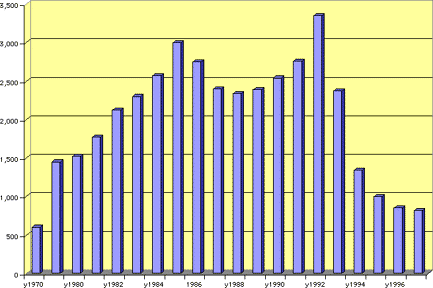 From 1991 to 1992, SurinameÕs economic situation showed some improvement, and measures taken in 1993 led to economic stabilization, a relatively stable exchange rate, low inflation, sustainable fiscal policies, and growth, However, SurinameÕs economic situation has deteriorated since 1996, due in large part to loose fiscal policies of the Wijdenbosch government, which, in the face of lower Dutch development aid, financed its deficit through credit extended by the Central Bank. As a consequence, the parallel market for foreign exchange soared so that by the end of 1998, the premium of the parallel market rate over the official rate was 85%. SinceÊmore thanÊ90% of import transactions took place at the parallel rate, inflation took off, with 12-month inflation growing from 0.5% at the end of 1996 to 23% at the end of 1998 and 113% at the end of 1999. The government also instituted a regime of stringent economic controls over prices, the exchange rate, imports, and exports in an effort to contain the adverse effects of its economic policies. The cumulative impact of soaring inflation, an unstable exchange rate, and falling real incomes led to a political crisis.