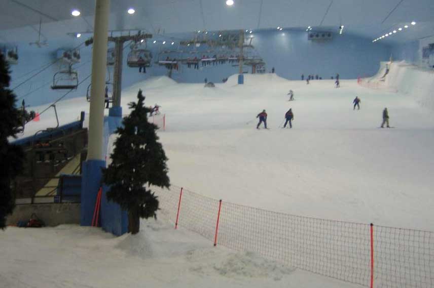 One of the most unusual destinations in Dubai is an indoor ski resort called Ski Dubai. Its is a 22,500 square meters indoor ski area. It has five ski trails of varied difficulties. Its highest slope is 279 feet.