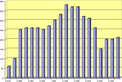 During the 5 years of civil war that culminated in the 1994 genocide, GDP declined in 3 out of 5 years, posting a dramatic decline at more than 40% in 1994, the year of the genocide. The 9% increase in real GDP for 1995, the first postwar year, signaled the resurgence of economic activity, due primarily to massive foreign aid.